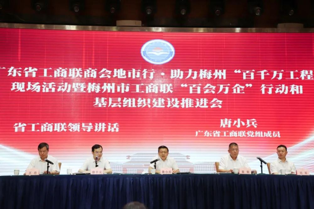 唐小兵指出,省工商聯(lián)商會地市行暨助力梅州市“百千萬工程”現(xiàn)場活動,共話梅州機遇、共商發(fā)展大計,共謀合作新篇,既是省工商聯(lián)貫徹落實黨中央關(guān)于高質(zhì)量發(fā)展決策部署的生動實踐,也是省工商聯(lián)落實省委“1310”具體部署的創(chuàng)新之舉、助力“百千萬工程”的擔(dān)當(dāng)之舉、服務(wù)民營經(jīng)濟發(fā)展的務(wù)實之舉,更是梅州市進一步加快對外開放步伐,加大招商引資、招才引智,促進市場主體質(zhì)量提升的重要舉措。就進一步發(fā)揮省工商聯(lián)商會作用,提出三點希望:一是聚焦梅州資源優(yōu)勢,爭做梅州融灣發(fā)展的倡導(dǎo)者。希望各位會長、秘書長和企業(yè)家朋友們成為綠美梅州的見證者和代言人,宣傳推介梅州的人文優(yōu)勢、區(qū)位優(yōu)勢、資源優(yōu)勢、生態(tài)優(yōu)勢、文旅優(yōu)勢,讓更多的企業(yè)家了解梅州、認識梅州、關(guān)注梅州,動員更多的企業(yè)家參與梅州建設(shè)。二是聚力梅州發(fā)展大勢,爭做梅州創(chuàng)新發(fā)展的建設(shè)者。希望各位會長、秘書長和企業(yè)家朋友們把梅州作為夢想起飛的新起點、事業(yè)騰飛的新平臺,因時而動、順勢而為,用好用活各項優(yōu)惠政策,把更多優(yōu)勢產(chǎn)業(yè)布局梅州,把更多創(chuàng)新項目落地梅州,共享發(fā)展機遇,共創(chuàng)事業(yè)輝煌。三是聚集梅州振興勝勢,爭做梅州協(xié)調(diào)發(fā)展的實踐者。希望各商會切實發(fā)揮優(yōu)勢,積極引導(dǎo)動員會員企業(yè)踐行以人民為中心的發(fā)展思想,積極投身“百千萬工程”,團結(jié)帶領(lǐng)廣大企業(yè)家積極履行社會責(zé)任,充分發(fā)揮企業(yè)特點和優(yōu)勢,積極融入梅州特色產(chǎn)業(yè)發(fā)展,為梅州城鄉(xiāng)區(qū)域協(xié)調(diào)發(fā)展和促進共同富裕添磚加瓦。