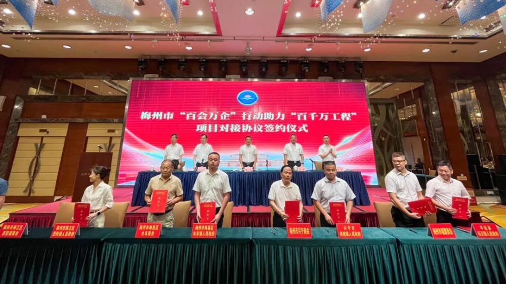 會議期間,8家商協(xié)會圍繞“助推培育‘四上’企業(yè)、壯大縣(鎮(zhèn))域經(jīng)濟(招商引資)、消費幫扶、公益慈善、綠美梅州”五大方面與8個鎮(zhèn)(街)政府舉行梅州市“百會萬企”行動助力“百千萬工程”項目對接協(xié)議現(xiàn)場簽約儀式,預(yù)計三年簽約投入金額共計5.3593億元;與會人員觀看梅州招商推介宣傳片;實地參觀考察梅縣區(qū)水車鎮(zhèn)白沙村美麗鄉(xiāng)村建設(shè)項目和梅州智慧柚柚創(chuàng)意園,現(xiàn)場感受梅州實施“百千萬工程”取得的扎實成效。